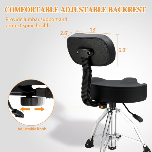 5. 【Portable and Easy to Install】The backrest drum throne can be easily installed in just six steps and is easy to store. You can use the drum stand for indoor practice or on-stage