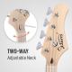The dual adjustment lever and stabilization system on the headstock, ergonomic design, and solid maple fretboard provide better playability and durability.