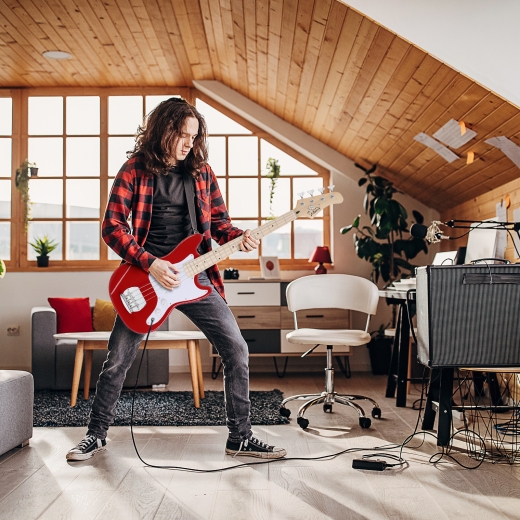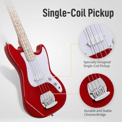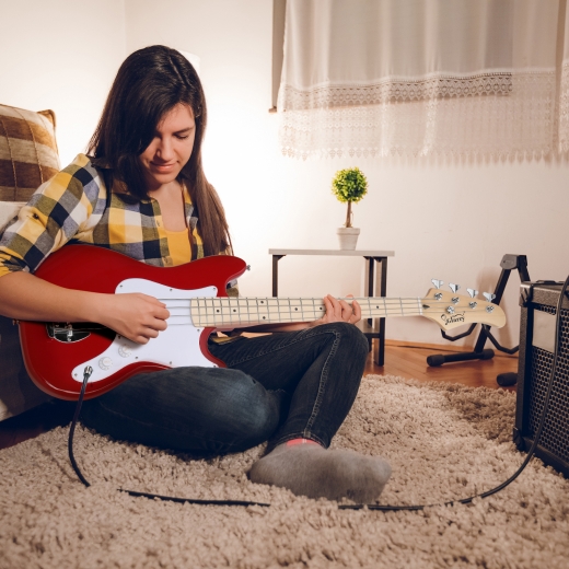 The single-coil pickup, volume and tone controls, and modern slotted saddle bridge ensure that this bass guitar produces rich, high-quality tones.