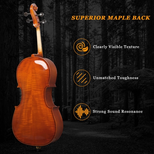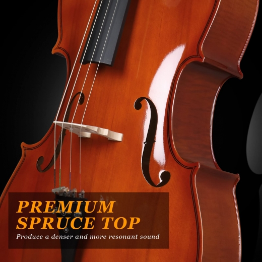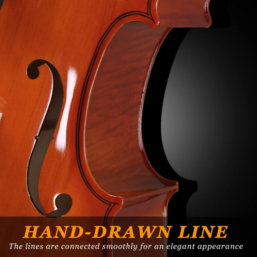 Crafted from premium spruce, the cello's top offers enhanced toughness, resulting in a denser and more resonant sound. The maple back, with its distinct texture, not only adds an elegant touch but also effectively absorbs noise and minimizes vibration transmission.