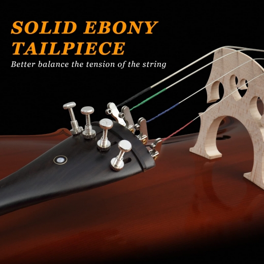 Made of premium ebony, our fingerboard is dense and solid, enabling it to withstand the stress of continuous daily use while providing hours of comfortable play during jam sessions. The ebony tailpiece effectively balances string tension, complemented by four fine-tuning screws for effortless tuning.