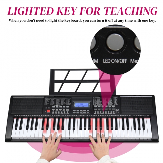 Featuring 61 lighted keys, this function is perfect for beginners to play and learn a song quickly. When you don’t need to light up the keyboard, you can turn it off, so it’s a normal keyboard.