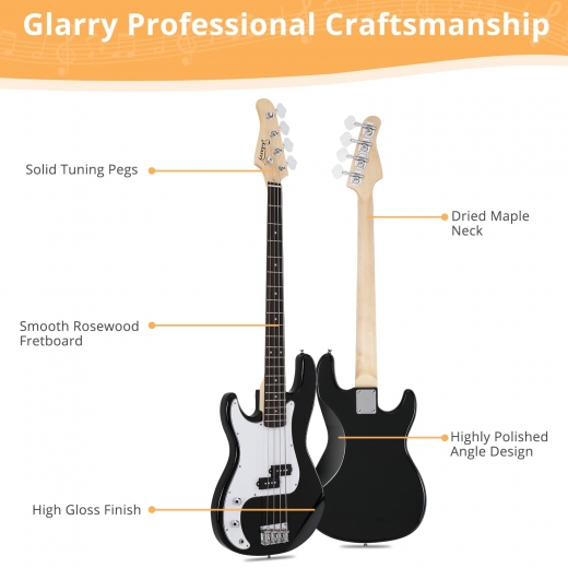 Get a Glarry bass guitar and enjoy high-quality sound and durability. At Glarry, our goal is simple: to provide beginner musicians with the best possible instruments from day one. Whether you're a beginner or an experienced player, this guitar's modern design and versatile sound make it perfect for anyone. Each guitar is made with precision craftsmanship and comes with a gift package. Order yours now and start making beautiful music with a guitar that will last a lifetime.
