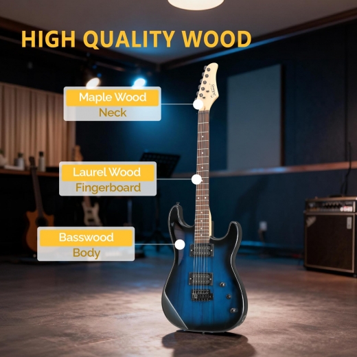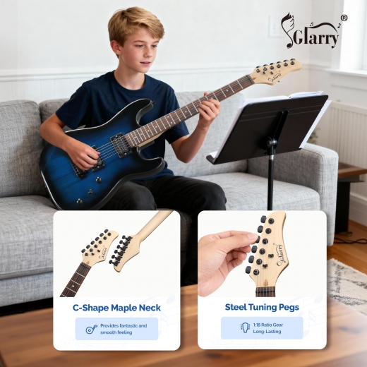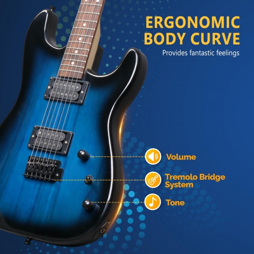 GREAT GIFT ELECTRIC GUITAR KIT: Available in stylish dark blue and clean white finishes, this beginner electric guitar kit looks modern and eye-catching on stage or at home. It is a great gift choice for teens and adults who want an electric guitar beginner kits option that includes everything in one box and looks as good as it sounds.